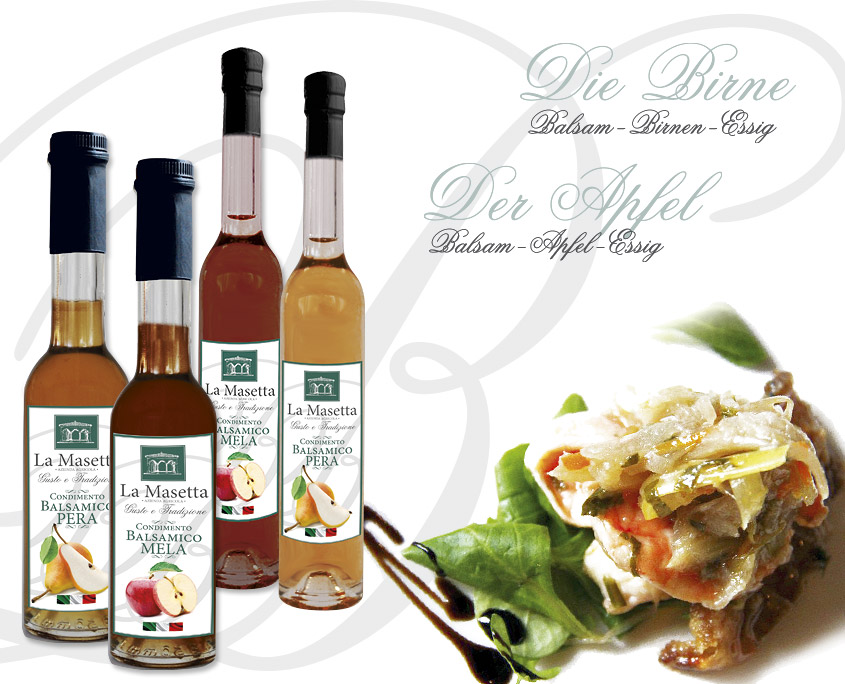 Die Balsam-Apfel- und Birnen-Essig-Dressings von La Masetta sind ein Zusammenspiel von Würze und Geschmack, das Sie in Erstaunen versetzen wird.
