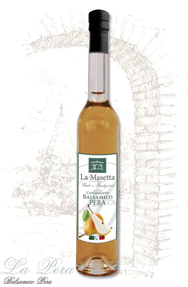 Succo di pera, mosto concentrato d’uva, aceto di vino, aroma pera. Contiene Solfiti.